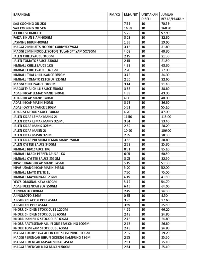 Senarai Harga Barang Runcit 2022 Terkini My Panduan